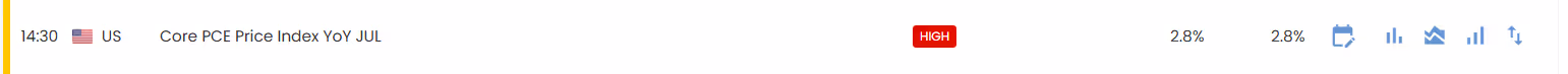 According to Trading Central's "Economic Insight", U.S. Core PCE Price Index is expected to remain stable at 2.8% year-on-year in July.