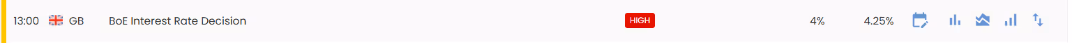 According to Trading Central's "Economic Insight", the BOE is expected to lower its key interest rate by 25 basis points to 4.00%.