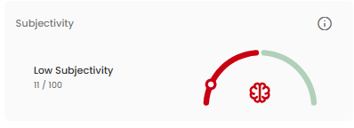 Meanwhile, the subjectivity widget is considered as "Very Low". The subjectivity index measures how rational the crowd's opinion of an entity is,which can be helpful in identifying market bubbles. Its score ranges from 0 (very rational) to 100 (very irrational).